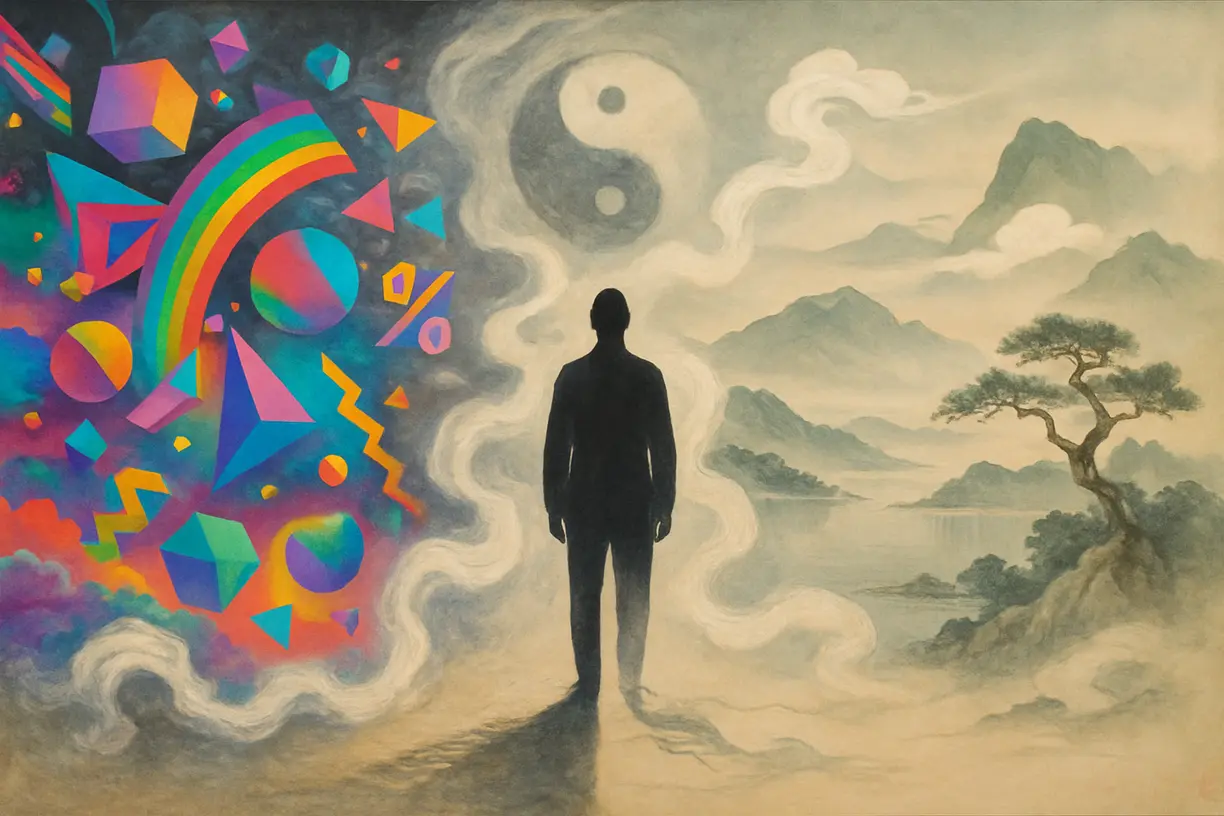 Все теории и практики даосской традиции построены именно между. Вы не найдёте ни одной китайской дисциплины, которая целиком опиралась бы лишь на одно полушарие: лишь на ясный логичный разум, или лишь на несдержанный творческий фристайл. В искусстве есть принципы, правила и пропорции. В науке есть чувство, ассоциативность и интуиция.