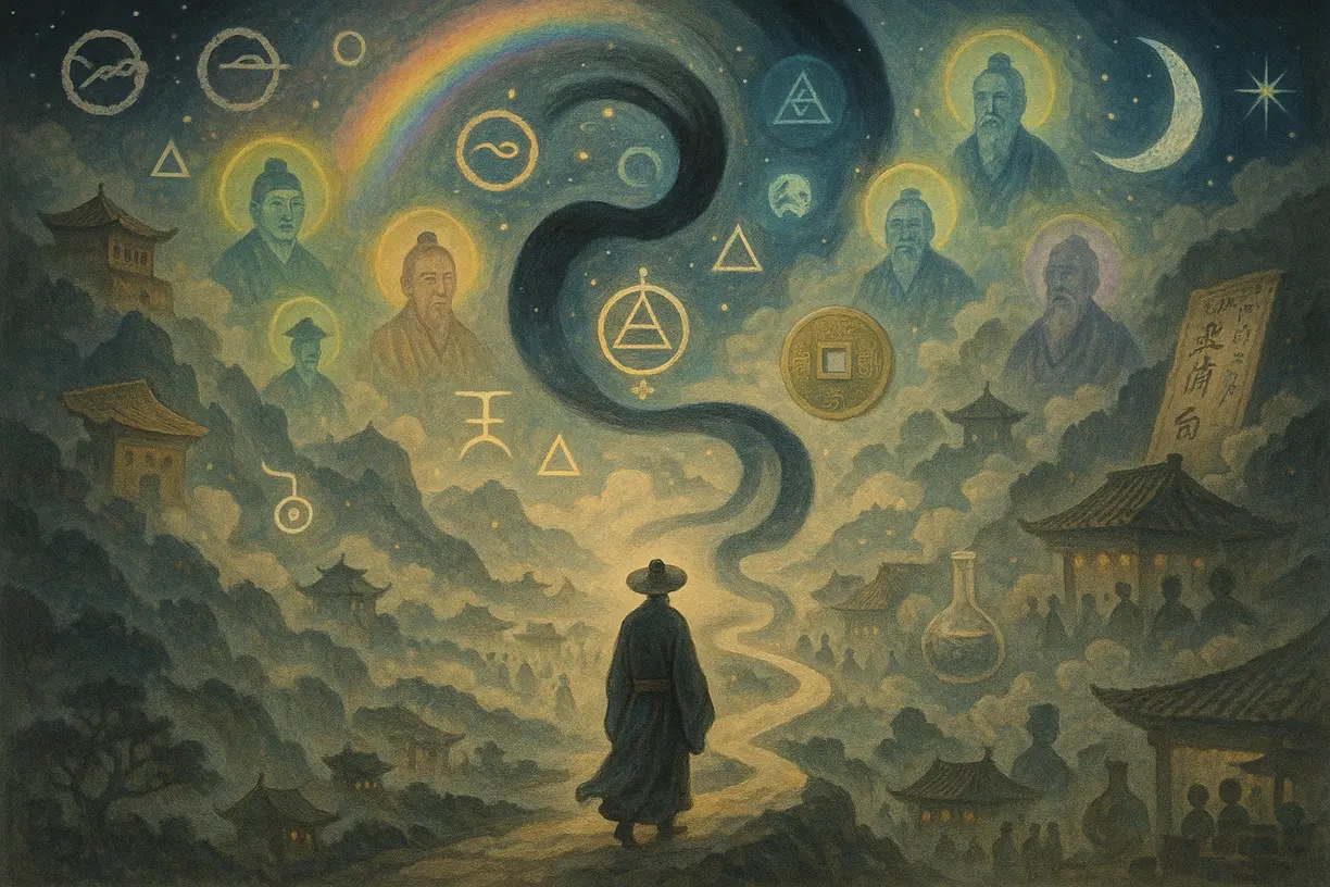 В средние века — около 2-3 веков нашей эры даосы увлеченно занимались внешней алхимией, практиками выплавления золотого раствора из киновари, что рассматривалось как эликсир бессмертия, приняв который можно было сделать свою жизнь не подверженной естественному старению, а при желании и вовсе вознестись в небеса, полностью выйдя из под контроля земных и человеческих законов и обстоятельств. Бессмертные были земные, человеческие и небесные. Земные продолжали жить среди людей столько, сколько считали уместным. Человеческие умирали и становились духами, помогающими людям, небесные, умерев, возносились без остатка в небеса, взяв с собой свое тело, не оставив на земле ничего своего. Тело растворялось в пространстве без остатка и уходило за радугу, гулять в небесном.