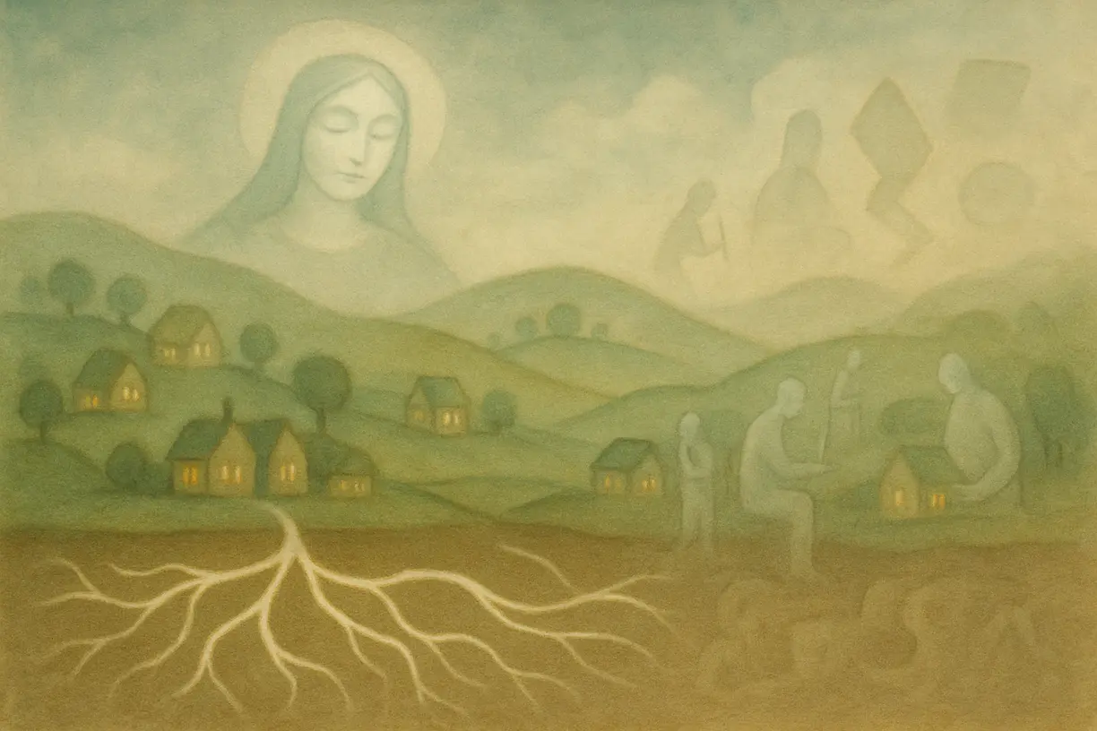 Одно из ключевых божеств религиозного даосизма — 土地公 tǔ dì gōng — сегодня считается богом богатства, ему делают подношения, когда хотят денег и успеха. Но в древние времена это божество было духом корней травы. К нему обращались, чтобы урожай лучше рос. Таким образом, богатство плотно связано со здоровыми социальными связями. Естественность и органичность человеческих связей вне идеологий, доктрин и диктата сверху — важнейший фундамент для процветания, успеха и богатства.