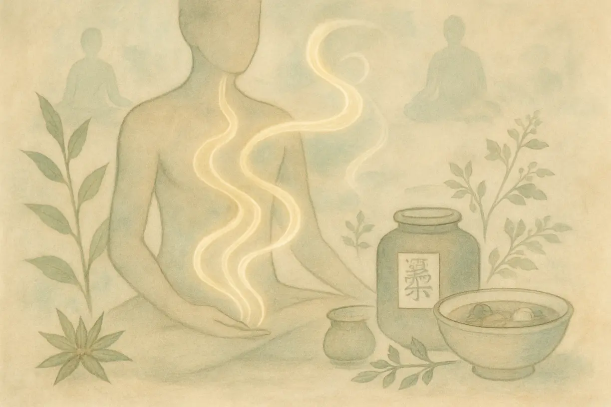 Помимо пищи, есть ещё китайская медицина, помогающая подбирать травы и минералы, подходящие человеку для обеспечения плавного и интенсивного притока ци и исцеления каких-либо внутренних препятствий для её равномерного распределения. В традиционной китайской культуре можно заметить, что знание о подходящем человеку питании, подходящих сезону продуктах и приправах встроено в поварское искусство. Поэтому в Тайване, зачастую, в закусочной могут посоветовать, что сейчас лучше поесть. Кроме того, в Тайване кое-где можно встретить рестораны с небогатым меню, где один и тот же вид супа может быть приправлен разными специями и овощными дополнениями. При этом меню больше походит на аптечный рецептурник. Суп номер один укрепляет почки и очищает кровь, суп номер два тонизирует печень и улучшает зрение и т.д.