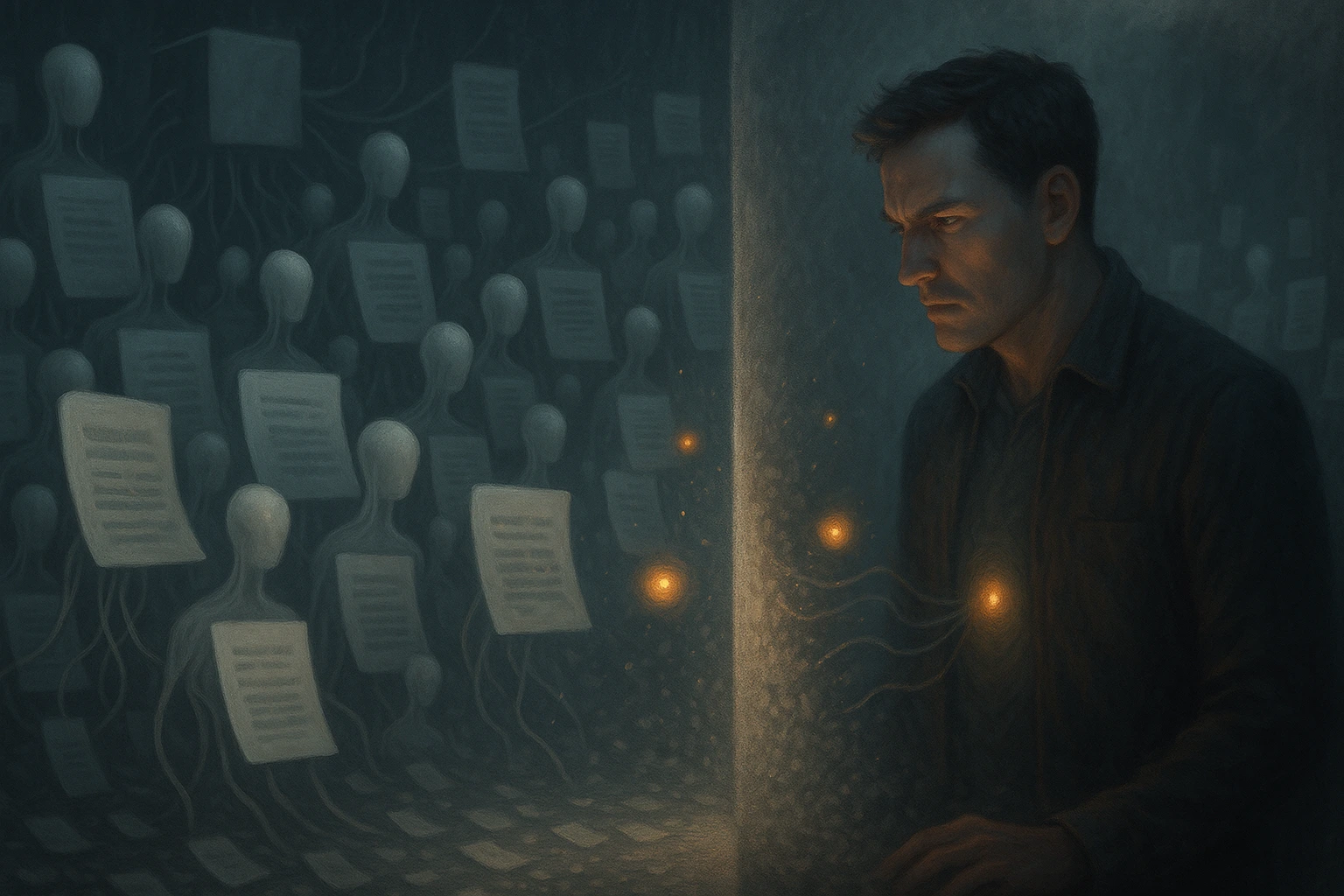 Это кусок данных, который выглядит как живой, движется как живой, но внутри он мёртв. Это безвкусная, пресная вата. И даже человек с высочайшим интеллектом и идеальной самодисциплиной не сможет на этом сконцентрироваться. Не потому что он болен, а потому что психика отказывается взаимодействовать с фальшивкой. В этом нет жизни, нет веры, нет присутствия автора.