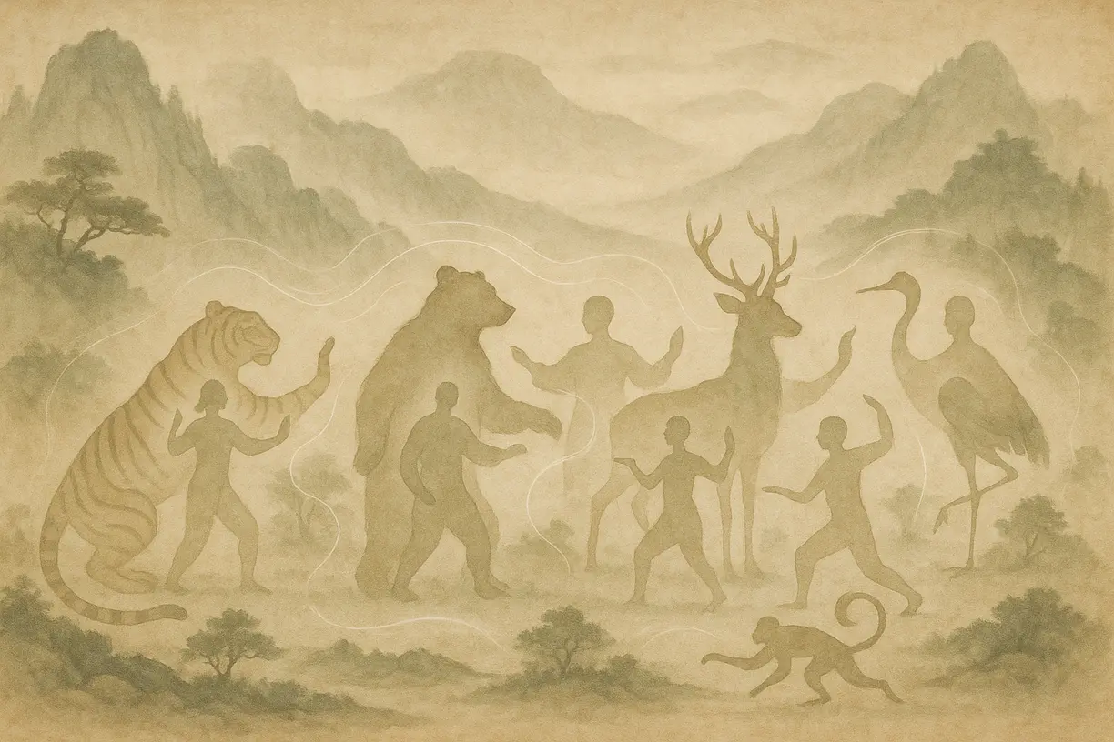Так появилось разнообразие школ телесных упражнений, которые занимались освоением естественных, природных способов движения тела. Люди наблюдали за грацией и силой тигров, укоренённостью медведя, размахом крыльев журавля, гибкостью обезьяны, горделивостью оленя, — и пытались двигаться, как они.