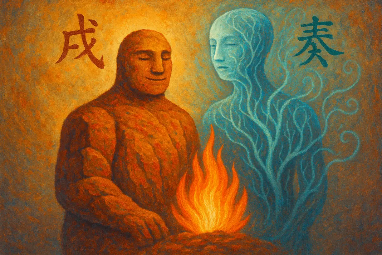 Она складывается из У 戊wù (почва-ян) и Гуй 癸guǐ (вода-инь).