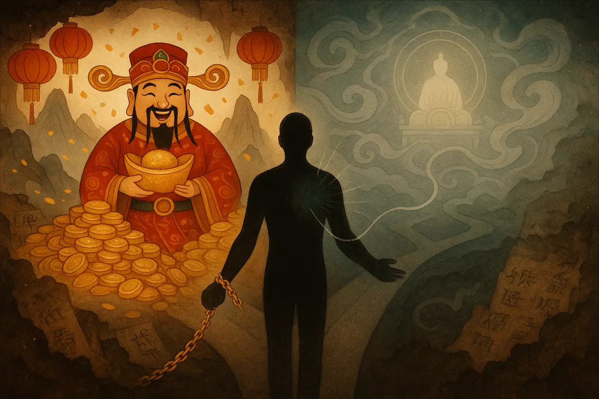 В наши дни ставить деньги на первое место — это делать себя зависимым. Поэтому мне всегда был чужд народный китайский культ поклонения богу богатства 財神 cáishén. Я с недоумением смотрел на друзей, интересующихся китайской культурой, которые каждый китайский новый год постили ошеломительно яркие китайские картинки с розовощёким дяденькой среди гор золота и ярко-красных фонариков. Я скрывал своё несогласие с этой модой. Я считал это моим личным эстетическим выбором, ведь большинство всегда право.