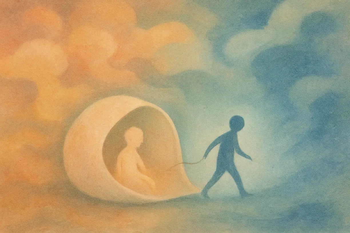Это базовый человеческий опыт. Мы все пережили травму рождения. В утробе матери мир был комфортным и безопасным, но нас вытолкнули оттуда, лишив заботы и питания. Это чувство отброшенности и покинутости глубоко укоренено в каждом человеке. Мы все мечтаем о неком постоянном и надёжном коконе, который всегда будет оберегать нас, не подводить и не оставлять. Мы ищем это постоянство в родителях, партнёрах, а иногда — во всей окружающей реальности. Как обиженный ребёнок, мы требуем от вселенной, чтобы она оставалась привычной и неизменной.