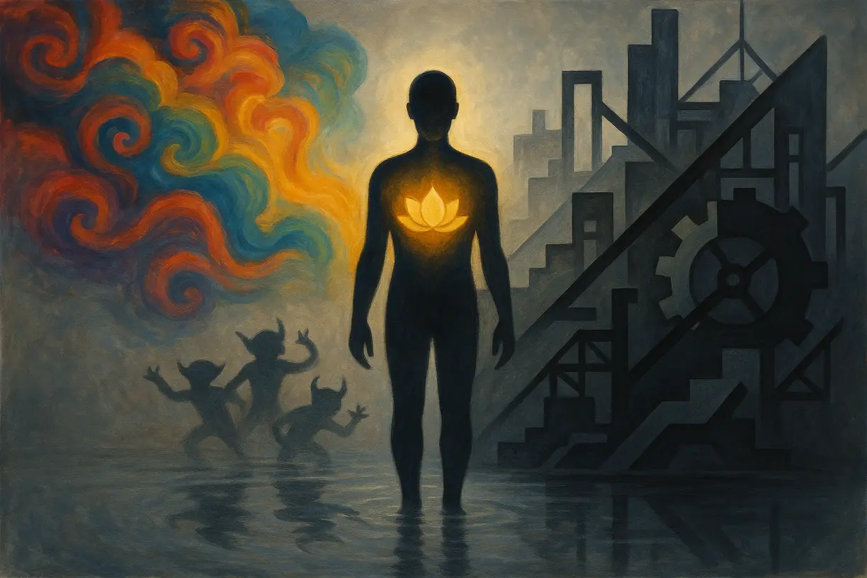 Действия без ясности духа — это акт насилия над собой. Внутренней ясности и цельности нет, но ты берёшь себя за шкирку и заставляешь себя сделать то, что, вроде бы, должно помочь.