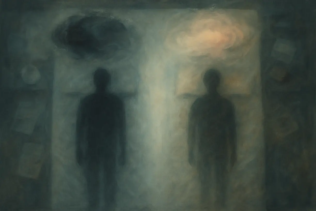 Когда мой клиент забыл прекрасные смыслы о своей жене, потерял связь с тем ярким облаком смыслов в своём сознании, то она стала восприниматься совсем иначе — через другое угрюмое облако смыслов.